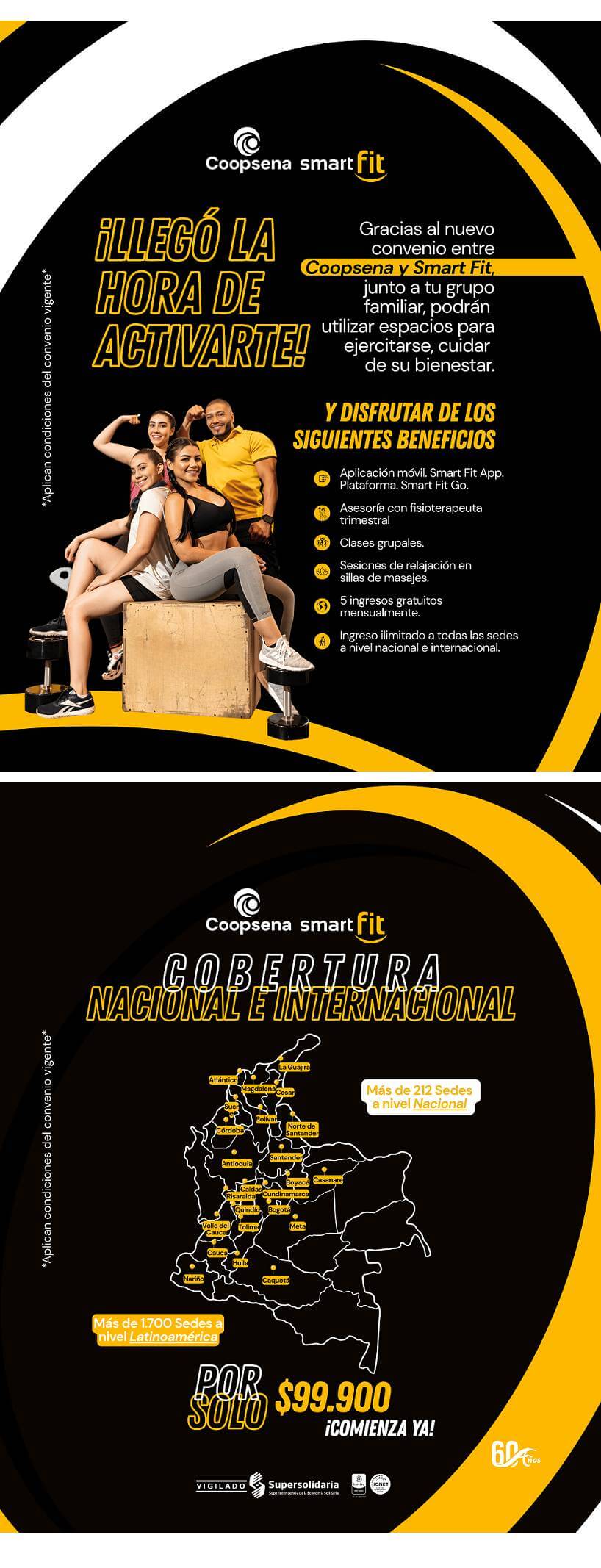 • Acceso ilimitado a todas las instalaciones y servicios de Smart Fit en Colombia y en los países donde Smart Fit tenga presencia.